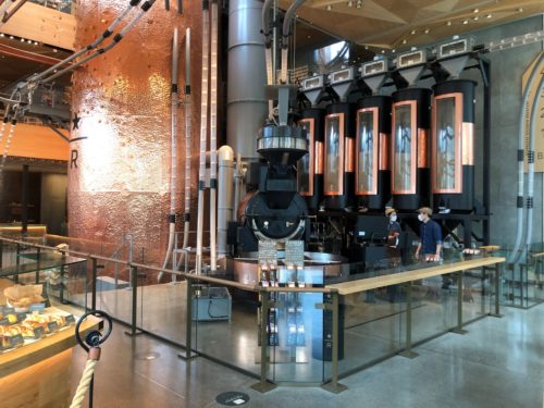 吹き抜け部分にコーヒー豆のロースター?がありますので、