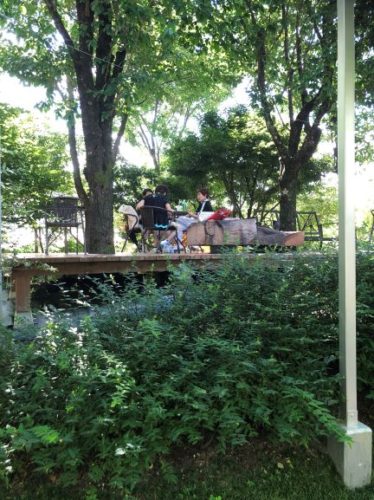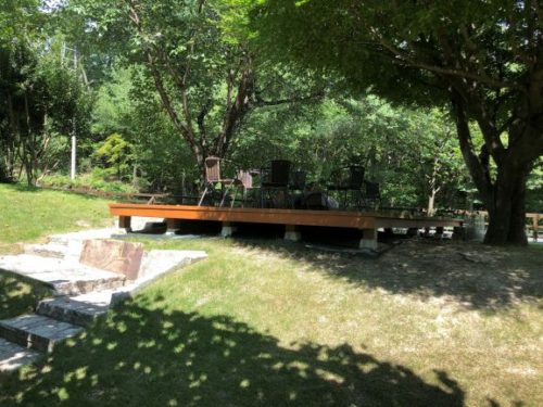 木陰には所々にウッドデッキや