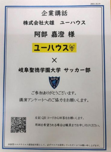 昨日、岐阜聖徳学園大学サッカー部の難波監督 のお招きで