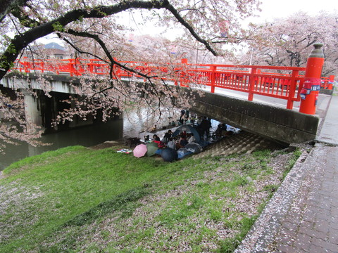桜も終わりました 2015.04.06 ユーハウスのブログでも さんざん桜ネタが出てきたので、 また~?と言われそうですが、 昨日の各務原市の桜まつりに参加してきたので、 そのレポートを報告します。 昨日はあいにくの雨の中での開催でしたが、 ご覧のように人出はまばらで散々でした。 露店も商売あがったりのようでした。 桜の花も散り始め今年の花見も終わりました。 本当に パッと咲いてパッと散る はかないですね。 雨だからと言って諦めきれないグループは、 橋の下を陣取って宴会をやっていました。 次は、私の最も好きな季節 新緑 の季節に入って行きます。
