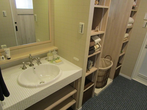 造作洗面カウンターや見せる収納は、A様のセンスが光ります。