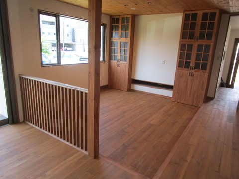 1,2階の床はボルドーパインの無垢フローリングを選んで頂いたので、