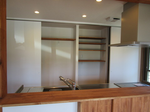 テレビボードの両脇には造作の本棚が造り付けてあります。