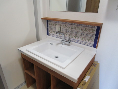 洗面脱衣室にも造作洗面化粧台が造り付けてありました。