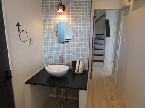 部屋にはなっていませんのでオープンな洗面ですが、