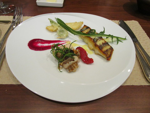 魚料理は、スズキのポワレと帆立貝のサラダ風