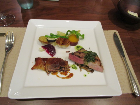 肉料理は、ドイツの鴨肉の〇〇?とイベリコ豚のステーキ風