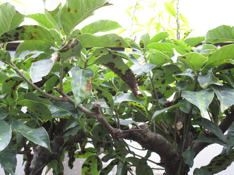 葉っぱに黒い斑点が出来たのです。
