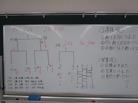 柔道の団体戦のように勝ち抜き戦形式で行います。