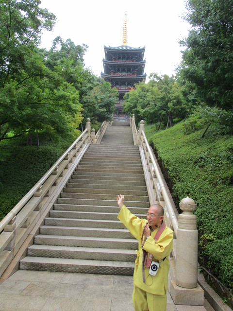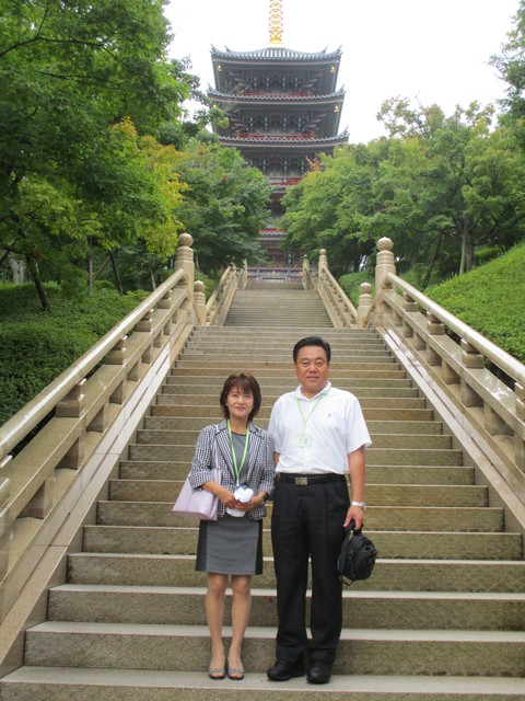 御世話役の方に五重塔をバックに記念写真を撮って頂きました。