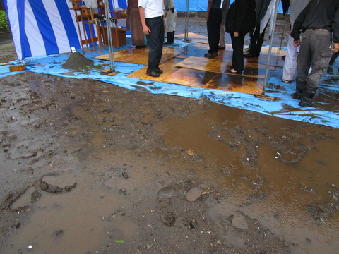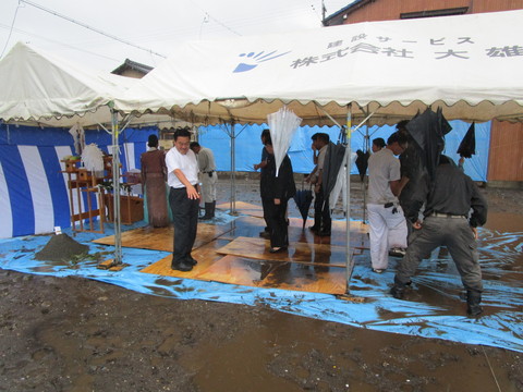 雨対策のために予定時間より20分程遅れて地鎮祭が始まりました。