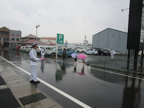 交通誘導員の方たちもカッパを着て、