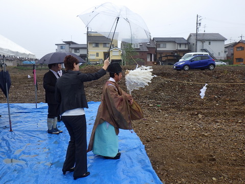 今日は、各務原市蘇原にて宅地開発工事の地鎮祭を行いました。
