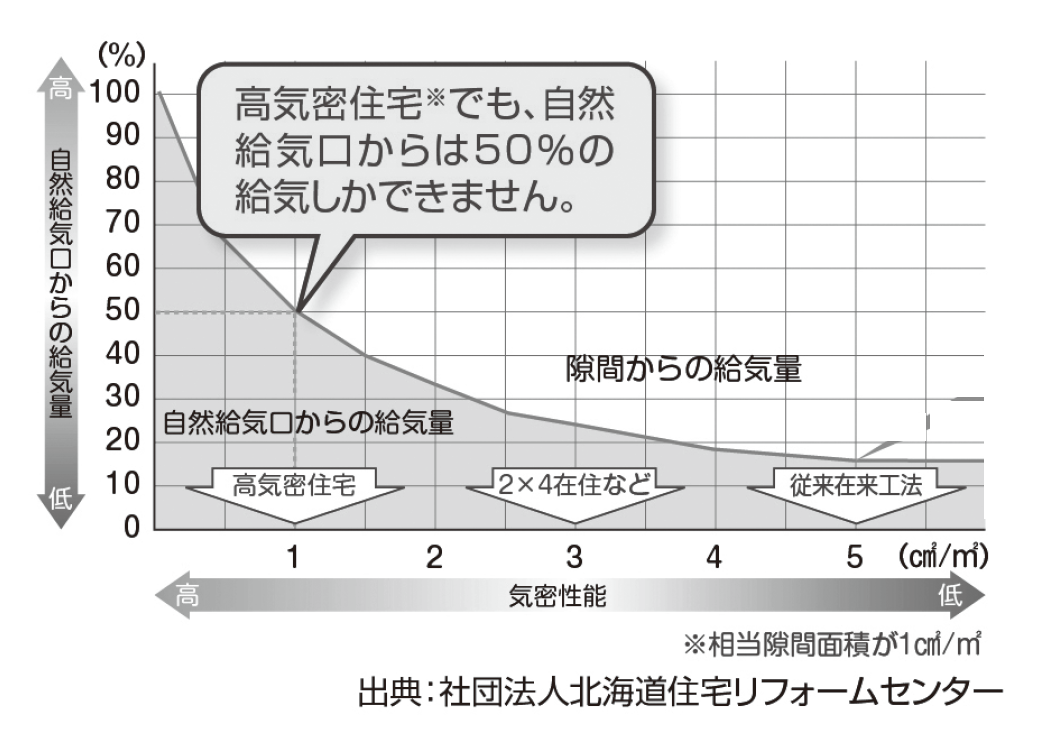 これは給気口以外の「家の隙間」から勝手に空気が入ってきているのです。