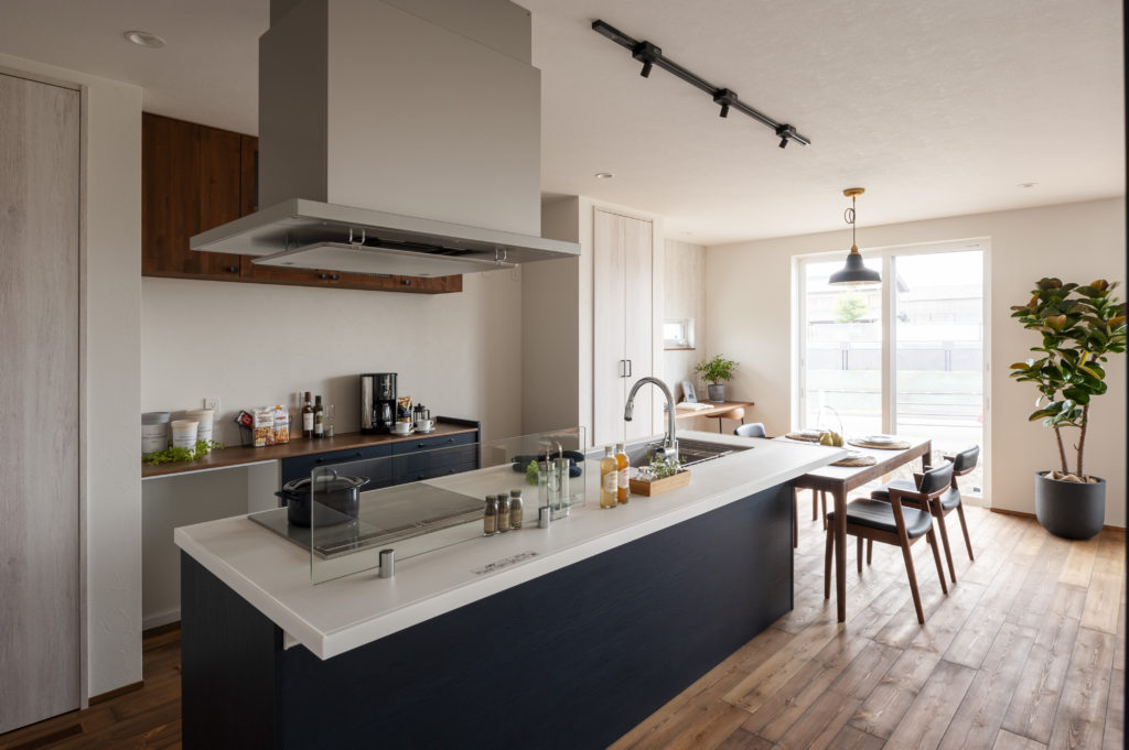 アイランドキッチンで家族の笑顔を見守る家