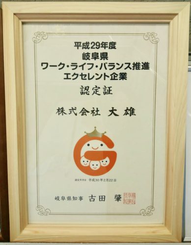 『岐阜県ワーク・ライフ・バランス推進 エクセレント企業』