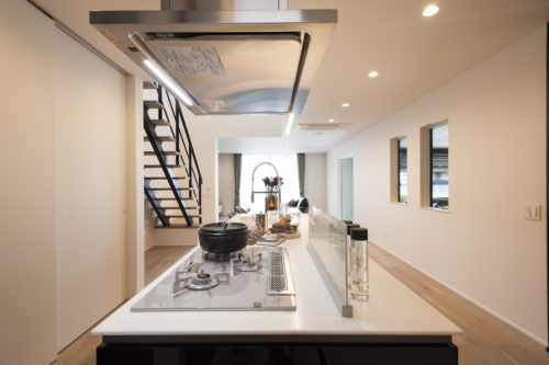 アイランドキッチンは開放的でコミュニケーショがとりやすく、自分好みの設計も可能である魅力溢れるキッチンになっています。