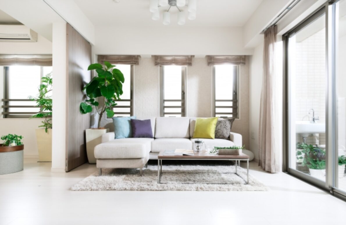 壁や天井、家具などに白や明るいグレー、淡いベージュを使用するのは、空間全体を明るく保つためです。