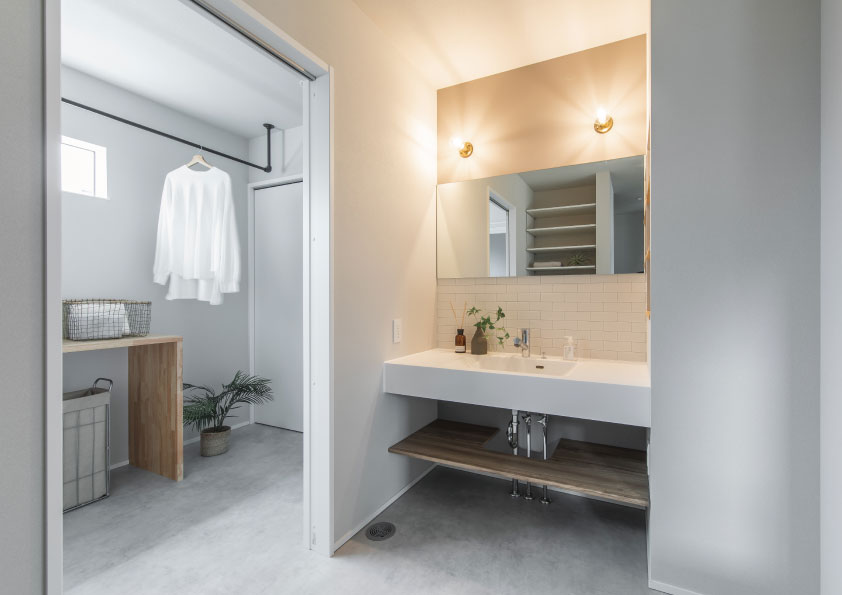 水廻りの動線をまとめているので移動が最小限になる家事ラク動線。