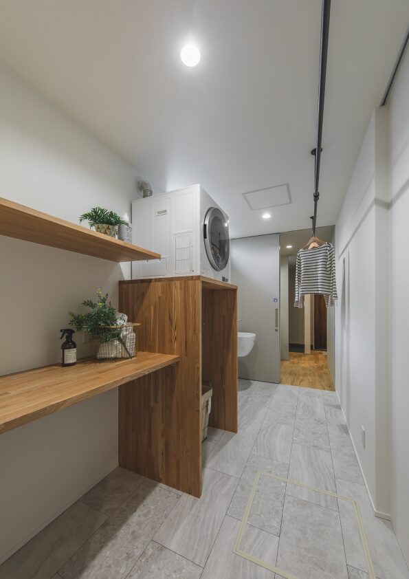 ■ 脱衣兼ランドリールームは4帖のスペースにスロップシンクとガス乾燥機“乾太くん”完備で1日に何回洗濯してもしっかりと乾燥まで終えられる洗濯に特化した究極家事ラク空間