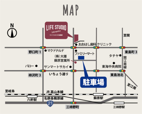 - ライフスタジオ各務原駐車場 (岐阜県各務原市蘇原野口3丁目7-1)