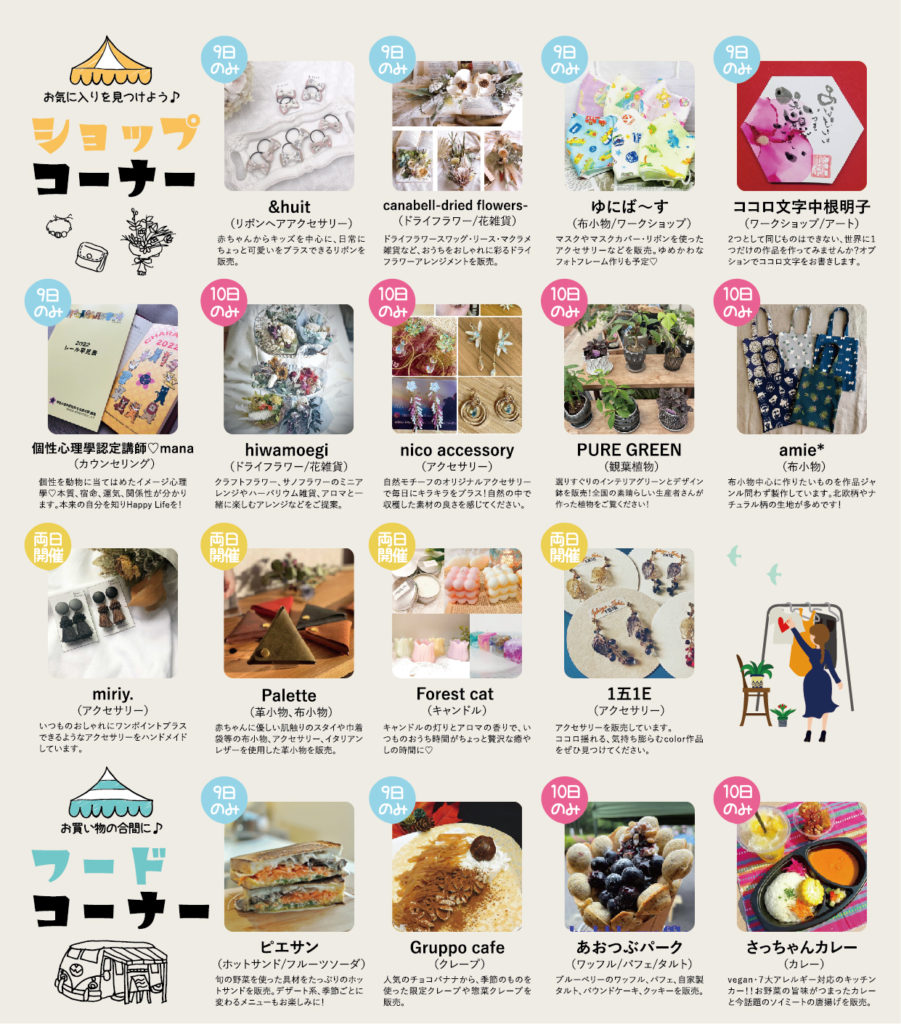 ハンドメイド雑貨や布小物、キッチンカーなど、盛りだくさん!
