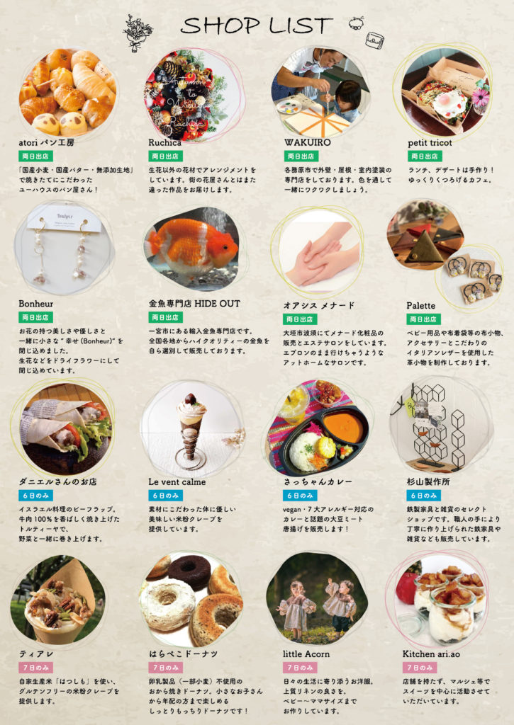 ハンドメイド雑貨や布小物、キッチンカーなど、盛りだくさん!