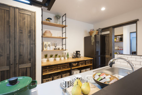 機能的ででスッキリとまとまったキッチン。奥の勝手口、ランドリーへと続き、家事ラクが体感できます。