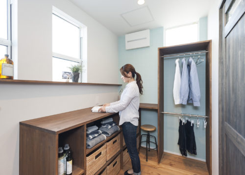 洗濯~物干し~収納までが1つの場所で完結するランドリールーム。空いた時間で趣味のスペースとしても活用できます。