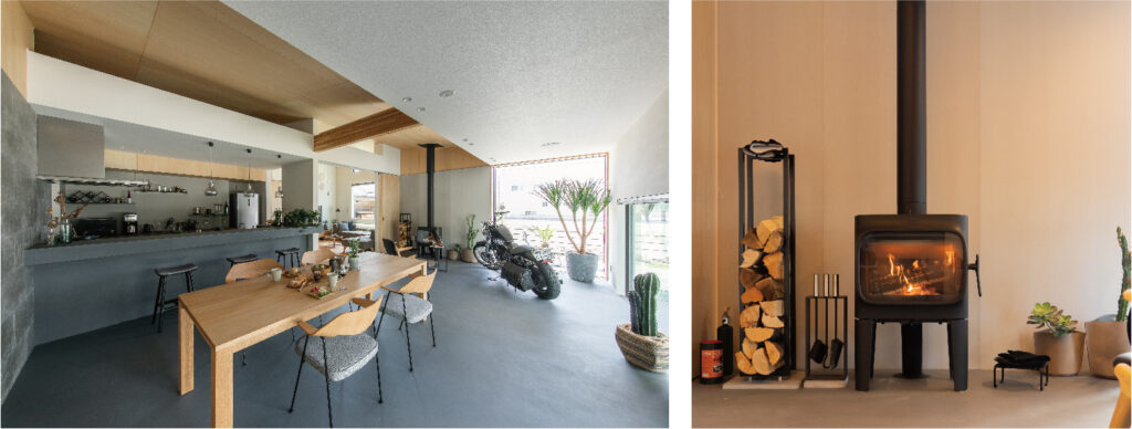 土間リビングの薪ストーブで焼き芋を作ったり、