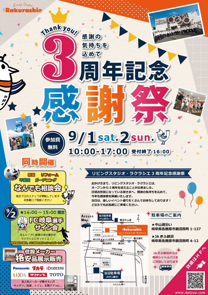 日頃お世話になっている皆さまへ、感謝の気持ちを込めて、3周年記念 感謝祭を開催します。