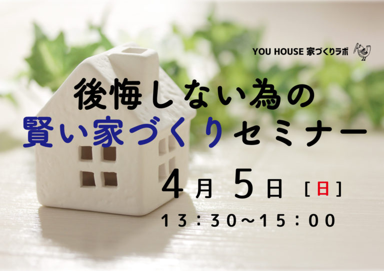 イベント情報などお家づくりに関する情報を随時配信中! +++++++++++++++++++++ 人生で一番大きな買い物と言われるマイホームだからこそ、 “なんとなく”の知識で家づくりに臨むの … 続きを読む 知らなきゃ損する 後悔しない為の賢い家づくりセミナー