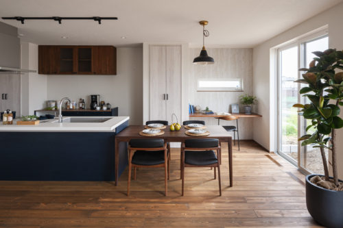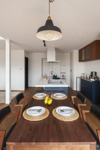 - アイランドキッチンで家族の笑顔を見守る家