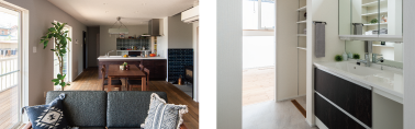 WICにもバルコニーにもつながる2階洗面脱衣室