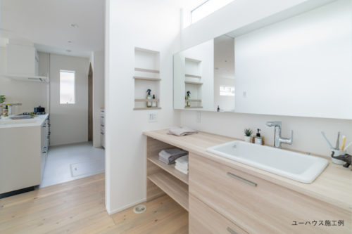 キッチンと洗面脱衣室が一直線でつながれば忙しい朝の家事も楽になります