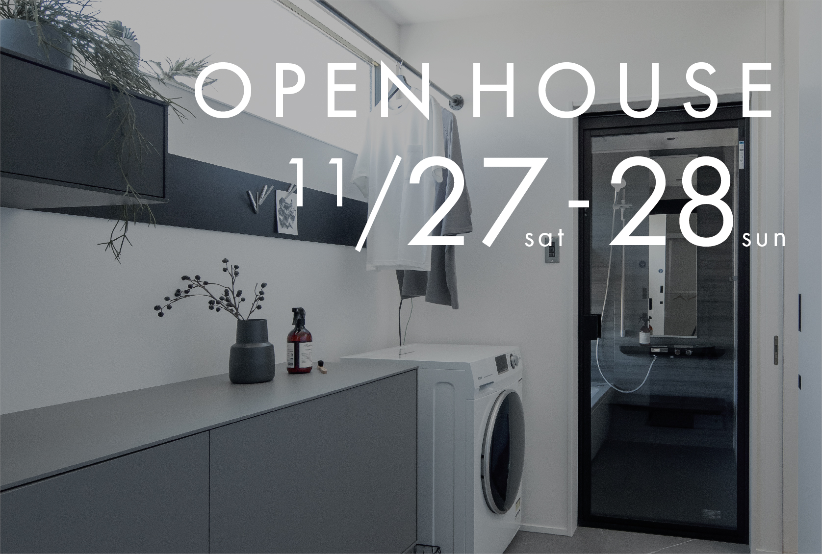 家事楽+収納力たっぷりの広々ランドリールームのある家